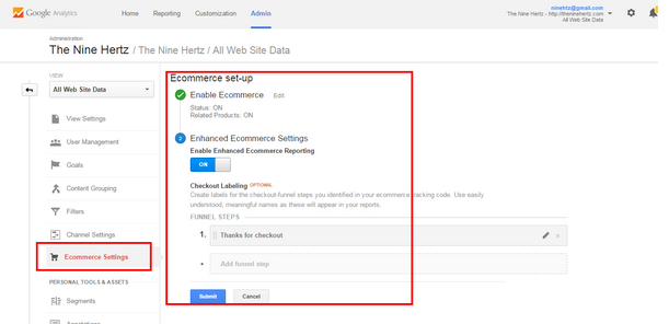 Next comes enabling tracking in Google Analytics. You need to turn on the button meant for e-commerce tracking with these steps: